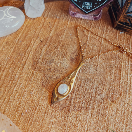 Ce collier en acier inoxydable doré est sublimé par un pendentif allongé au design inspiré de l’Art nouveau, caractérisé par ses lignes fluides et végétales élégantes. En son centre, une labradorite naturelle révèle de subtils reflets irisés qui captent la lumière et rendent chaque bijou unique. Raffiné et intemporel, ce collier apporte une touche artistique et lumineuse à toutes vos tenues, qu’il soit porté au quotidien ou lors d’occasions spéciales. Conçu en acier inoxydable, il offre une excellente résistance à l’eau et à l’oxydation pour un port durable.