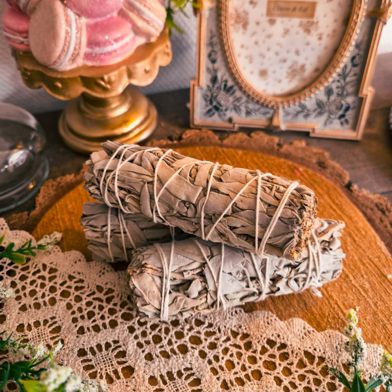 Bâtons de sauge naturelle idéals pour purifier l’air, chasser les énergies négatives et créer une atmosphère apaisante et relaxante.